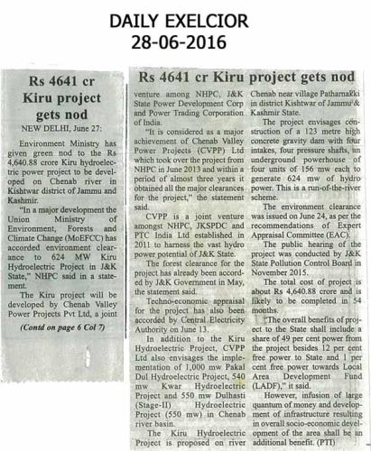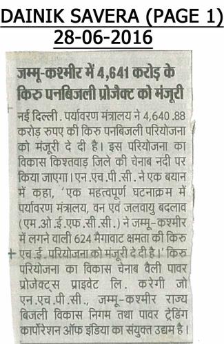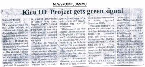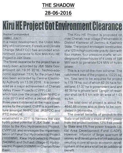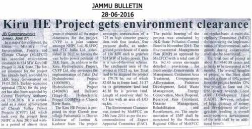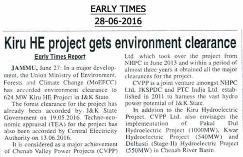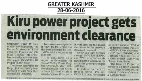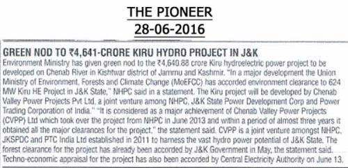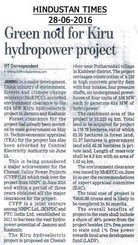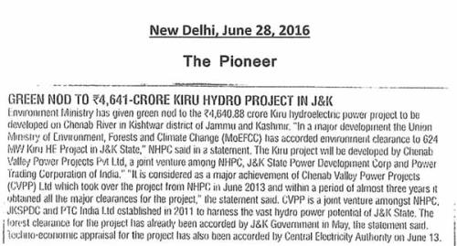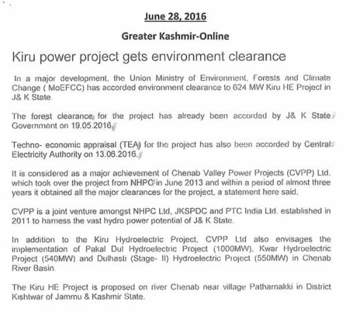 किरू एचईपी सीईए मंजूरी